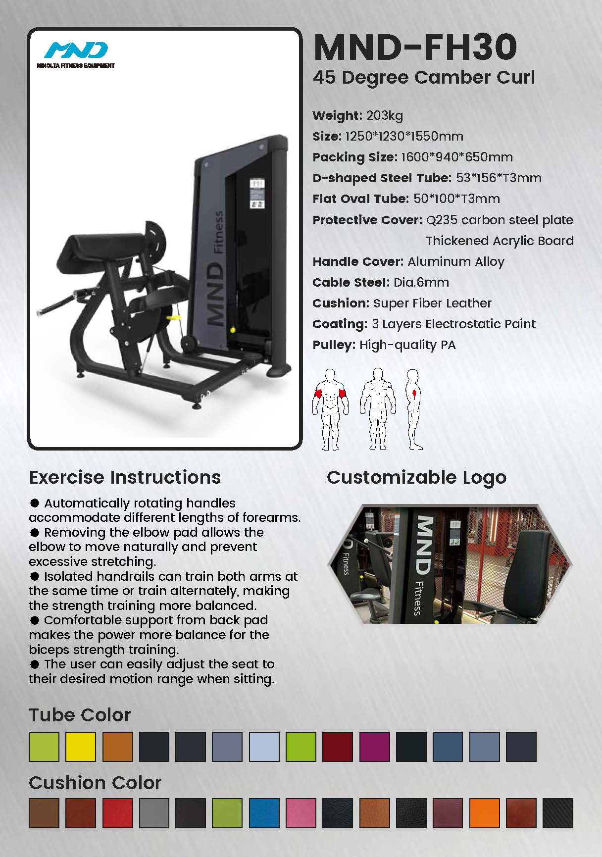 A máquina FH30 Camber Curl foi projetada para oferecer um treino de bíceps puro e não adulterado. Ao travar os braços no lugar e guiar a rosca ao longo de um caminho fixo, garante tensão constante no bíceps em toda a amplitude de movimento, levando a rápidos ganhos de força e tamanho.