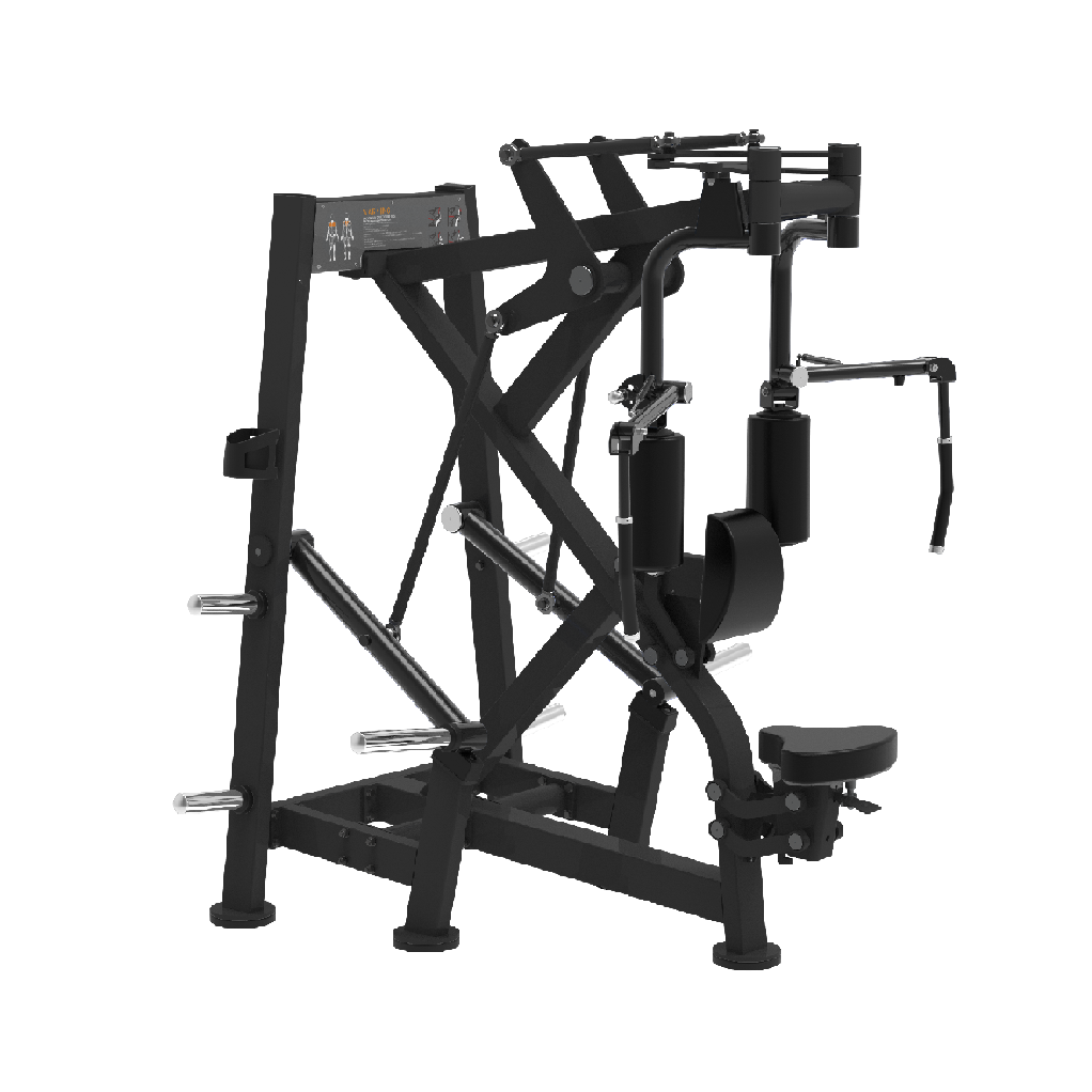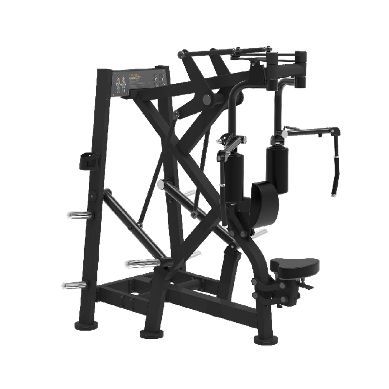 Maximize o espaço da academia e a eficiência do treinamento. Esta máquina versátil tem como alvo grupos musculares opostos – tórax e deltóides posteriores/parte superior das costas – em uma unidade compacta e resistente.