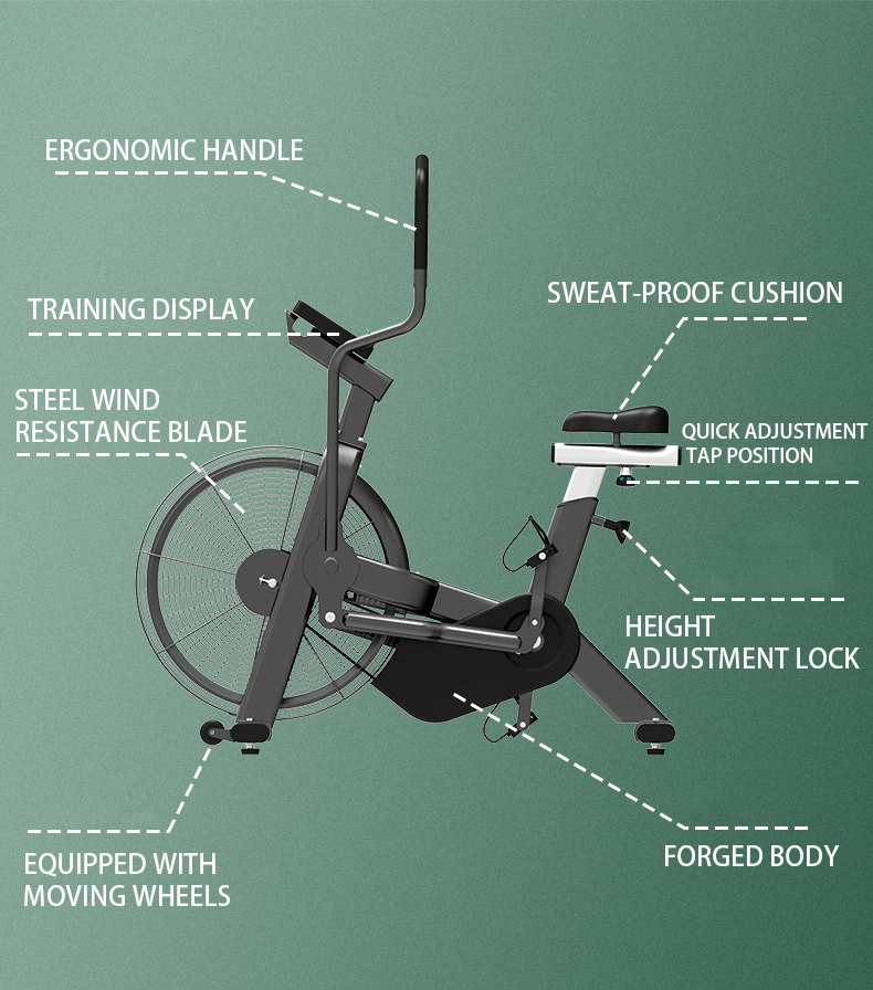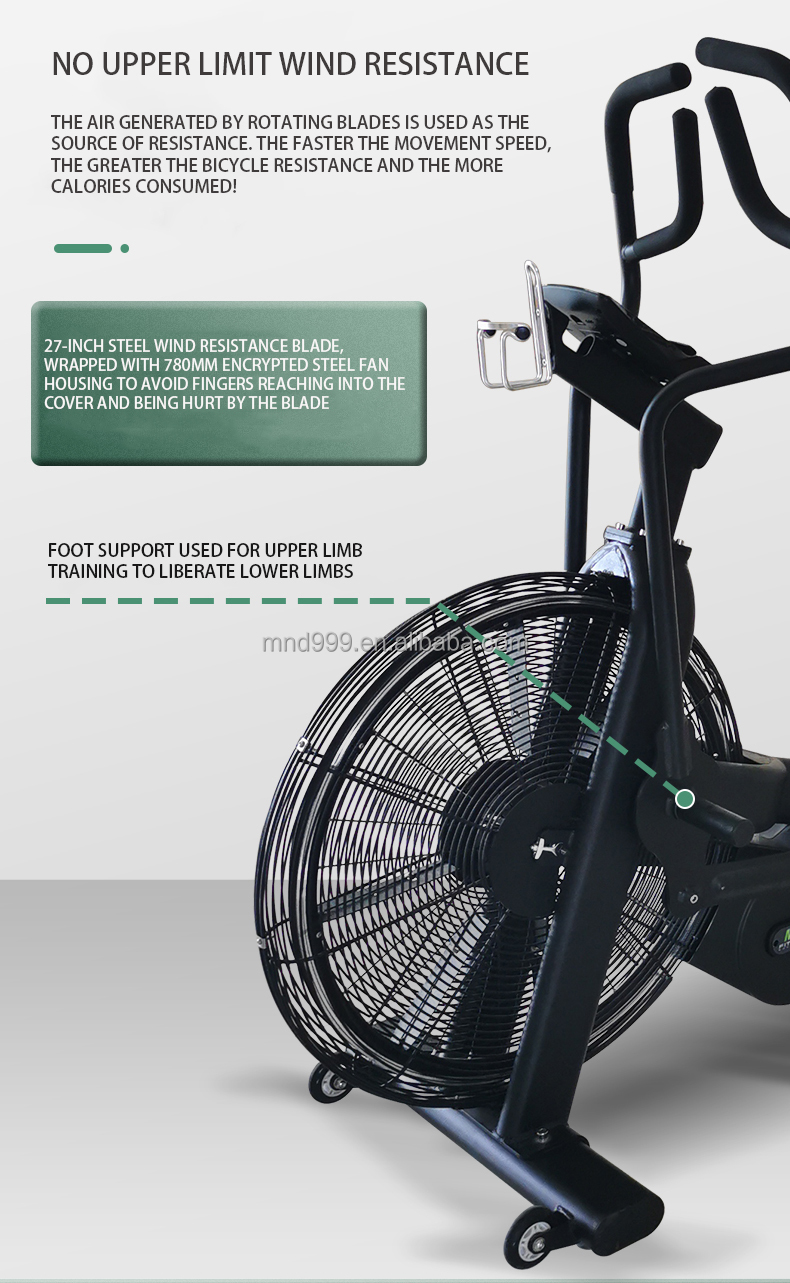Resistência ao vento autorregulada: O ventilador de ar cria uma resistência que aumenta diretamente com a velocidade de pedalada, proporcionando uma faixa de intensidade ilimitada.
