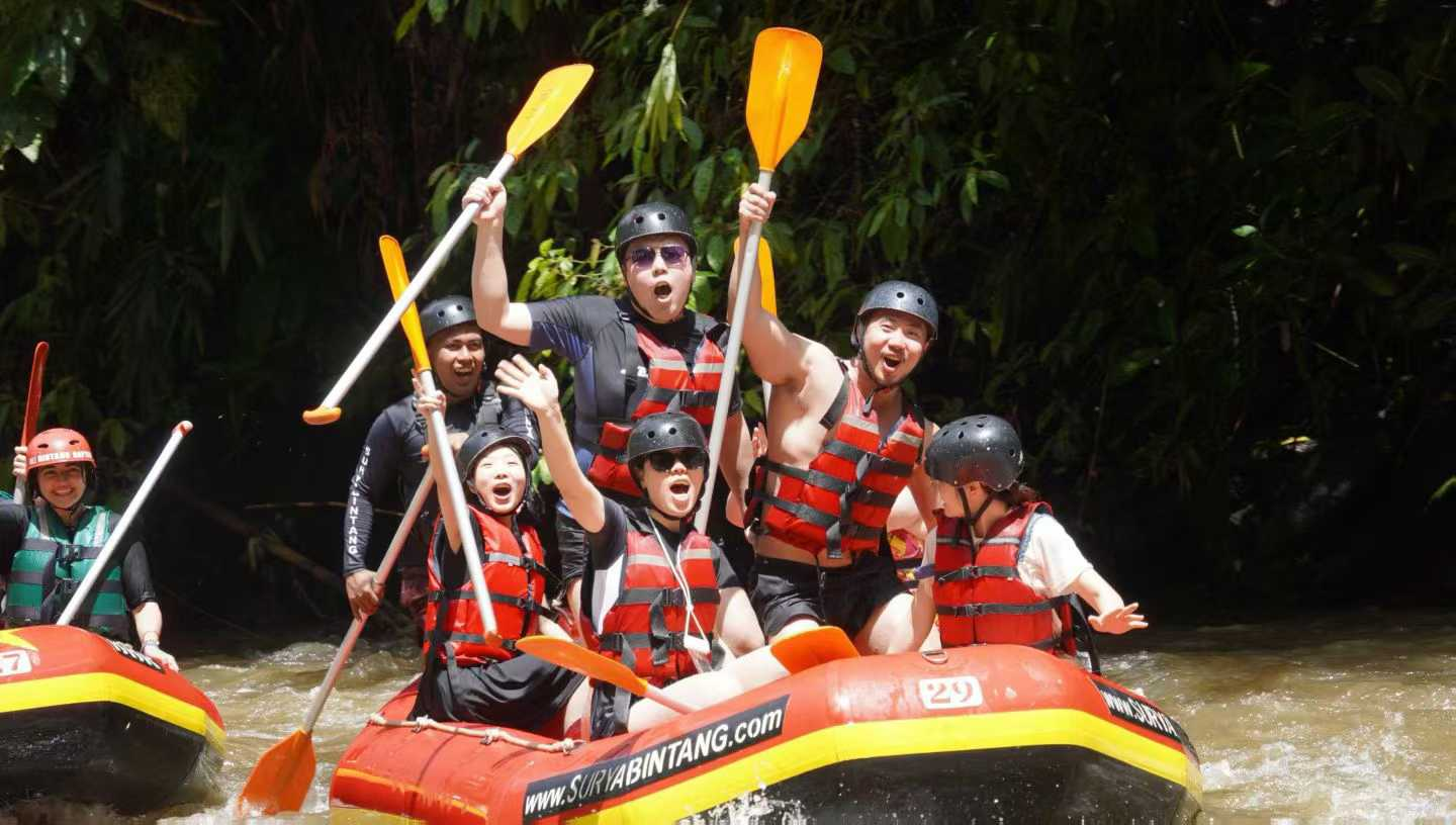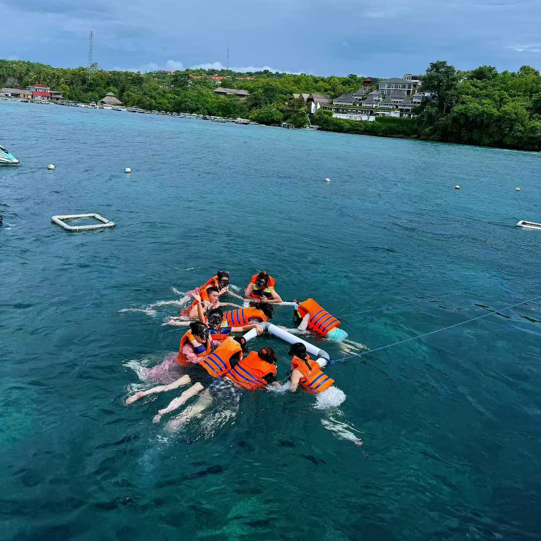 Como profissionais da indústria de equipamentos de fitness, a equipe integrou o espírito esportivo em todos os aspectos da jornada. No início da manhã, na praia de Lovina, eles perseguiram golfinhos coletivamente, experimentando a compreensão tácita e a coordenação perfeita do trabalho em equipe no mar. Durante o rafting no rio Ayung, eles demonstraram trabalho em equipe preciso e sincronização. A exploração de mergulho com snorkel na Ilha de Nusa Penida refletiu ainda mais a profunda prática de esportes e filosofias de saúde da equipe.