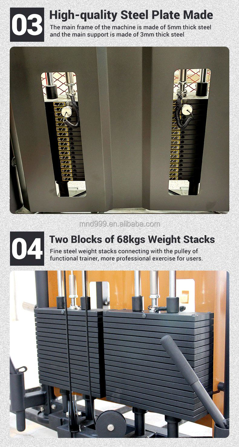 Projetado para uso pesado com sistema de contrapeso adicional. O MND-C81 oferece desempenho ultraestável para agachamentos, pressões e puxadas em ambientes comerciais.
