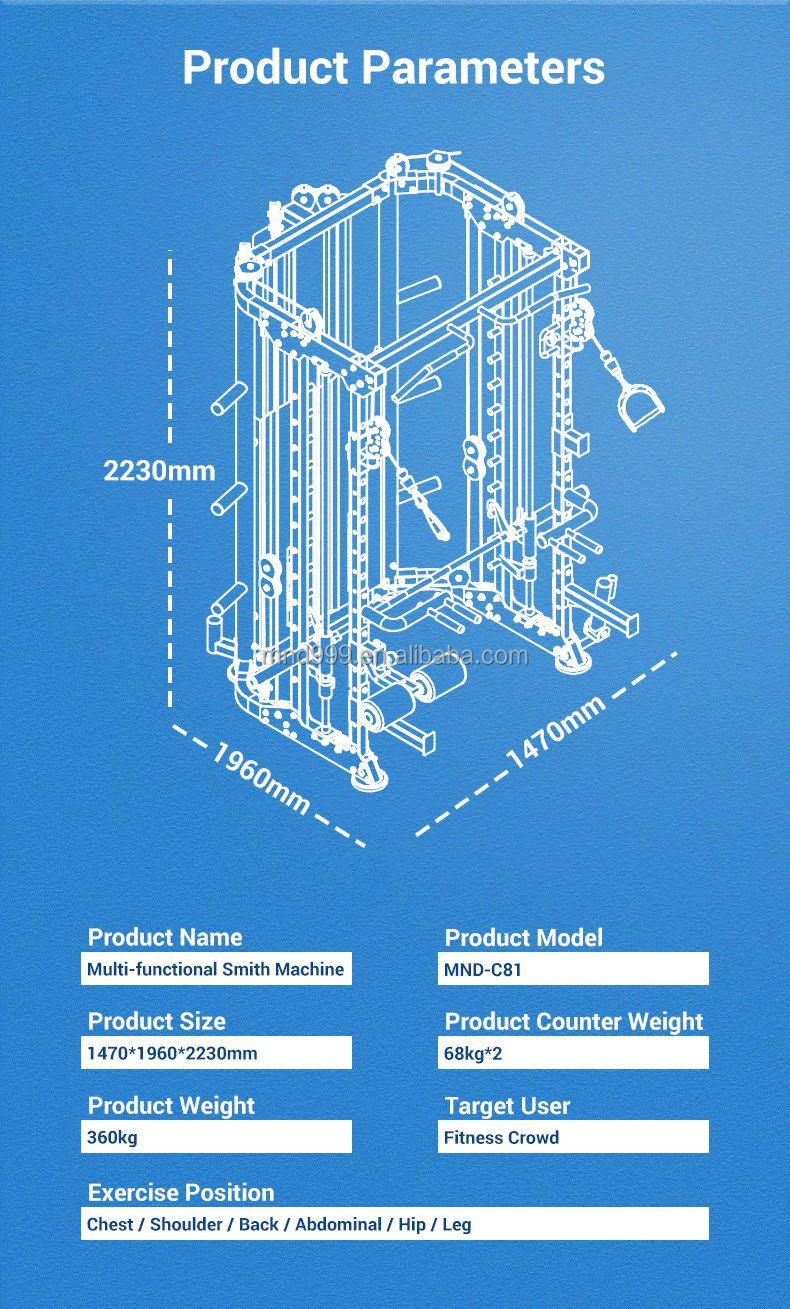 Máquina Smith multifuncional MND-C81 - Estabilidade aprimorada para treinamento intenso