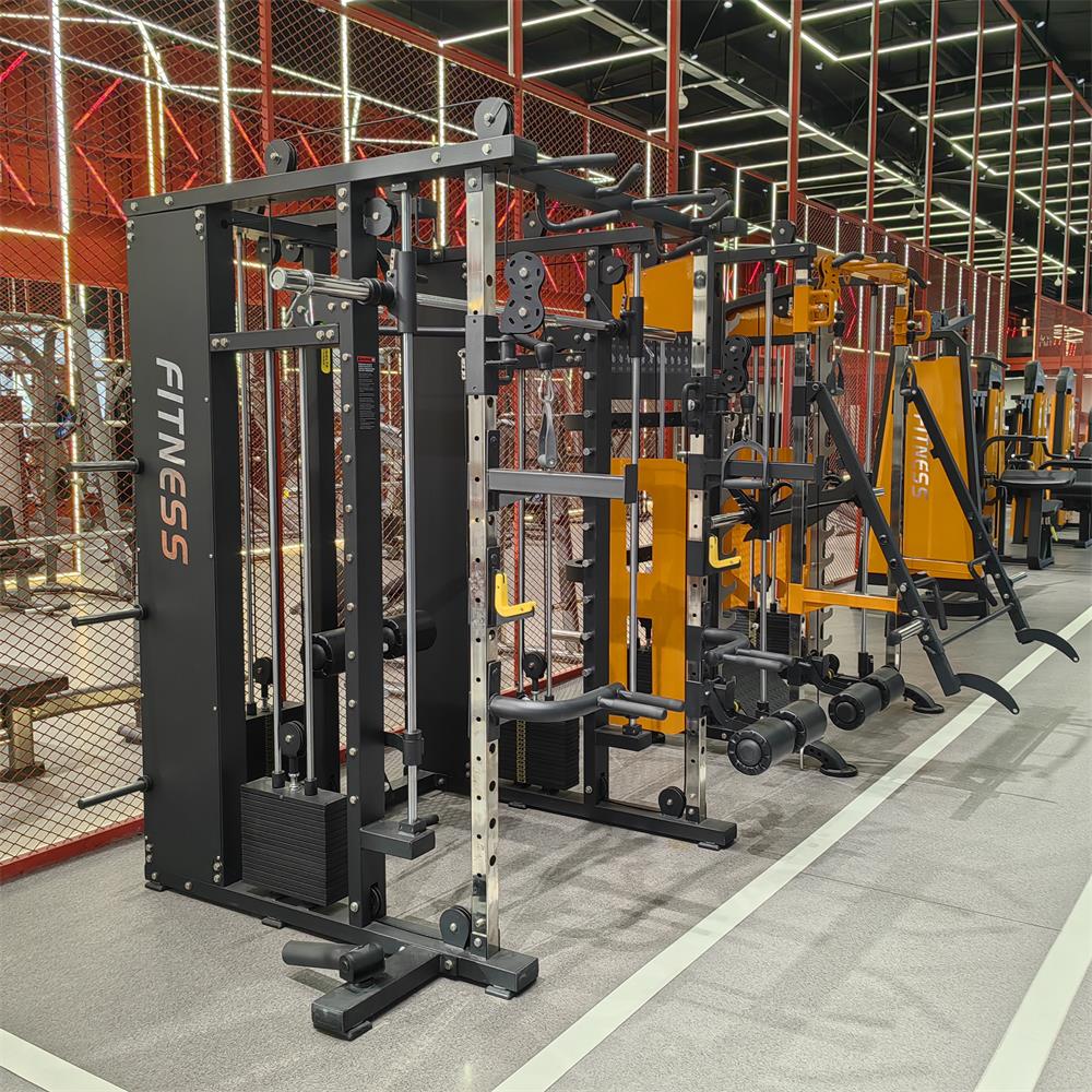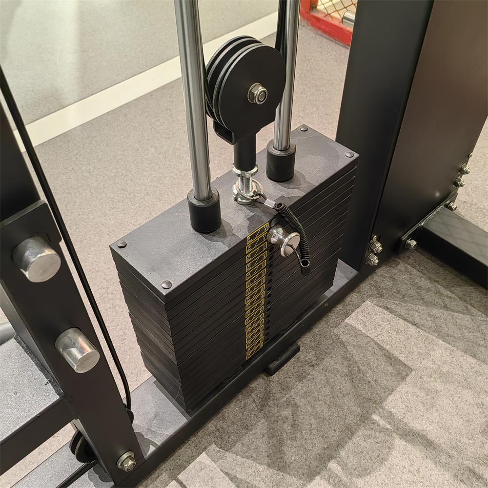 projetada para durabilidade comercial e versatilidade de treinamento. A barra Smith guiada oferece segurança para levantadores solo, enquanto os cabos altos e baixos e vários pontos de fixação permitem o treinamento de corpo inteiro.