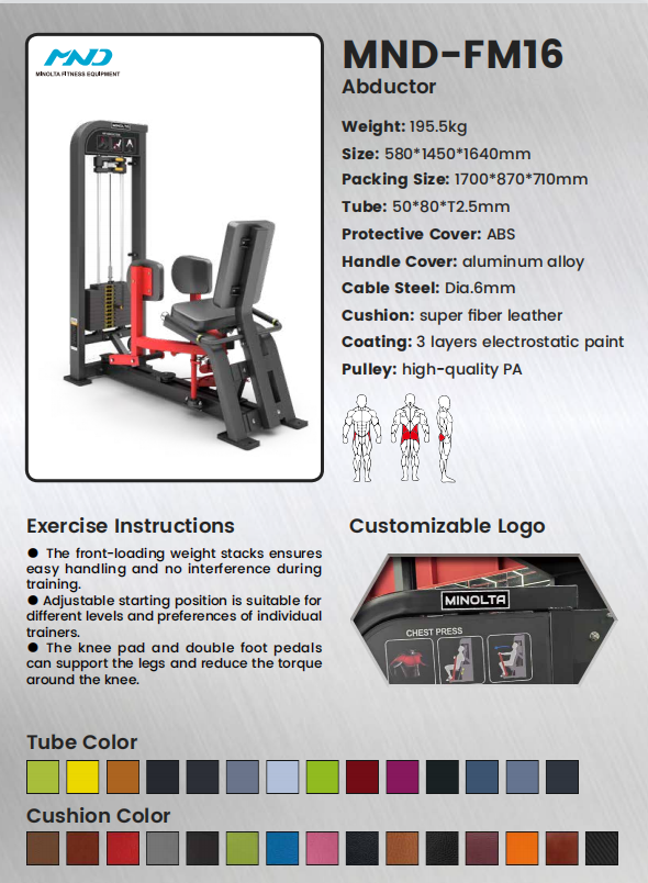 Defina seus glúteos e quadris externos. O MND-FM16 isola os músculos abdutores do quadril, principalmente o glúteo médio, crucial para criar glúteos mais redondos, melhorar a estabilidade do quadril e melhorar a estética e a função da parte inferior do corpo.