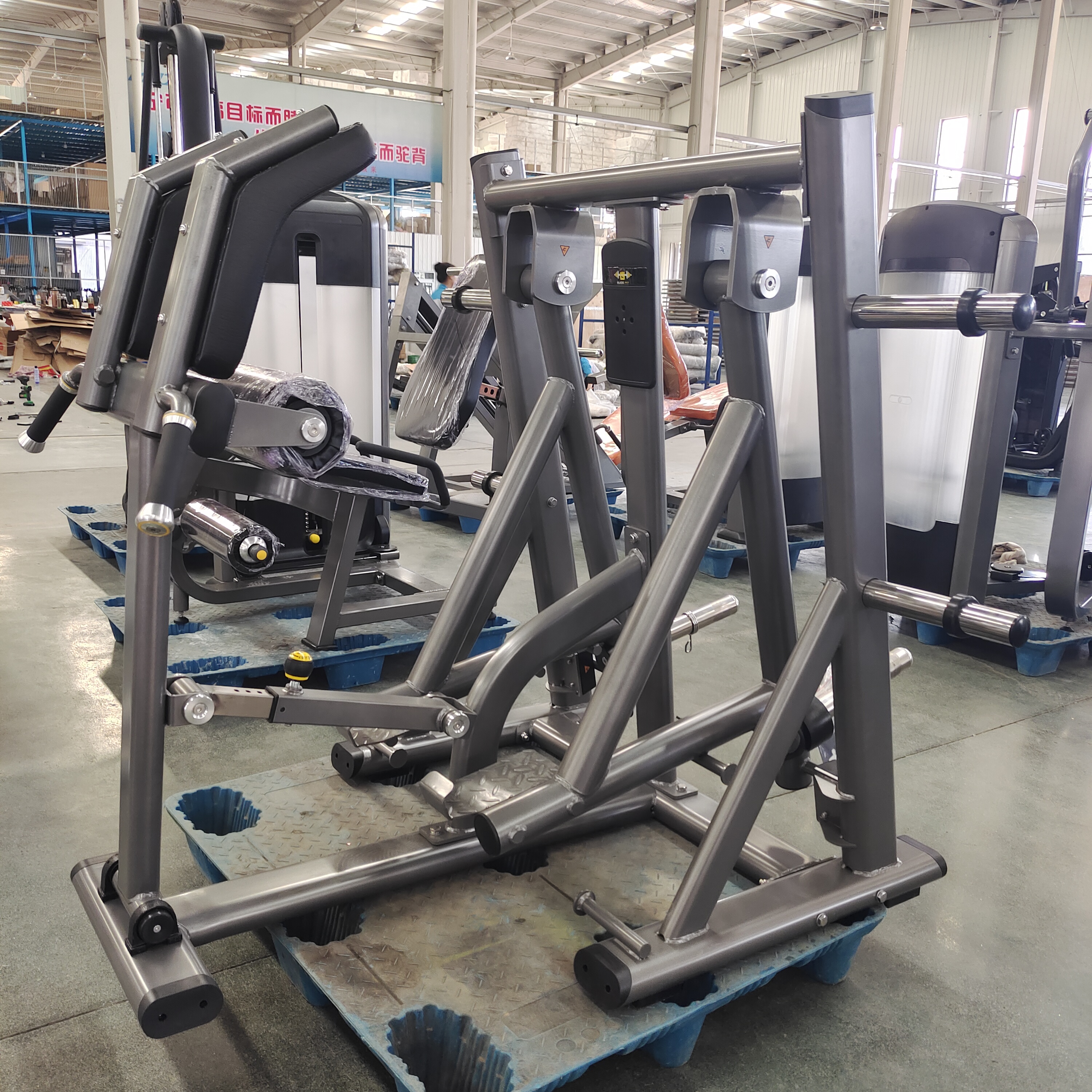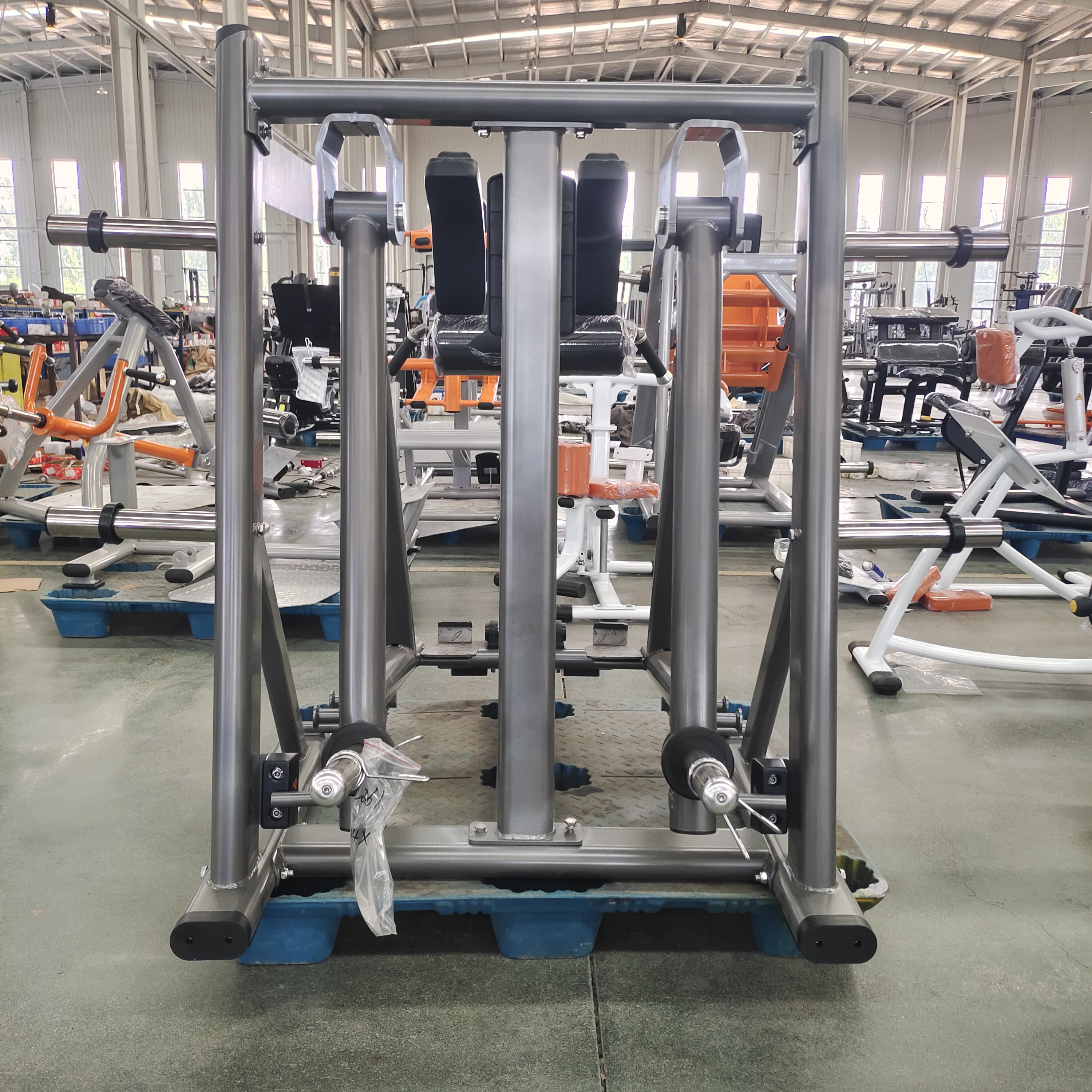Construção Reforçada: Com um peso líquido substancial de 168kg , a estrutura da máquina, feita de tubo plano elíptico (120x60x3mm; 100x50x3mm) e redondo (φ76x3mm) , garante estabilidade inabalável durante fortes movimentos e extensões do quadril.