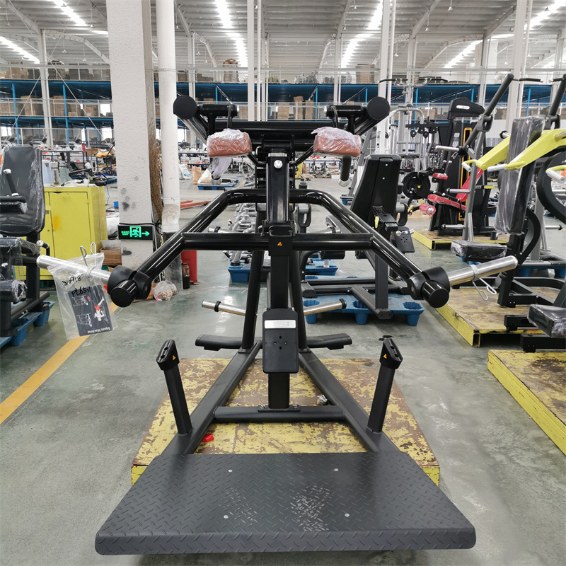 Esta máquina é a base para qualquer área de treinamento de força moderna e tecnológica . Seu sistema de pivô especial e posicionamento de treinamento de agachamento aberto e intuitivo são projetados para imitar ao máximo a demanda muscular e a estabilidade do usuário no agachamento com barra , proporcionando o ambiente controlado necessário para construir força com segurança.
