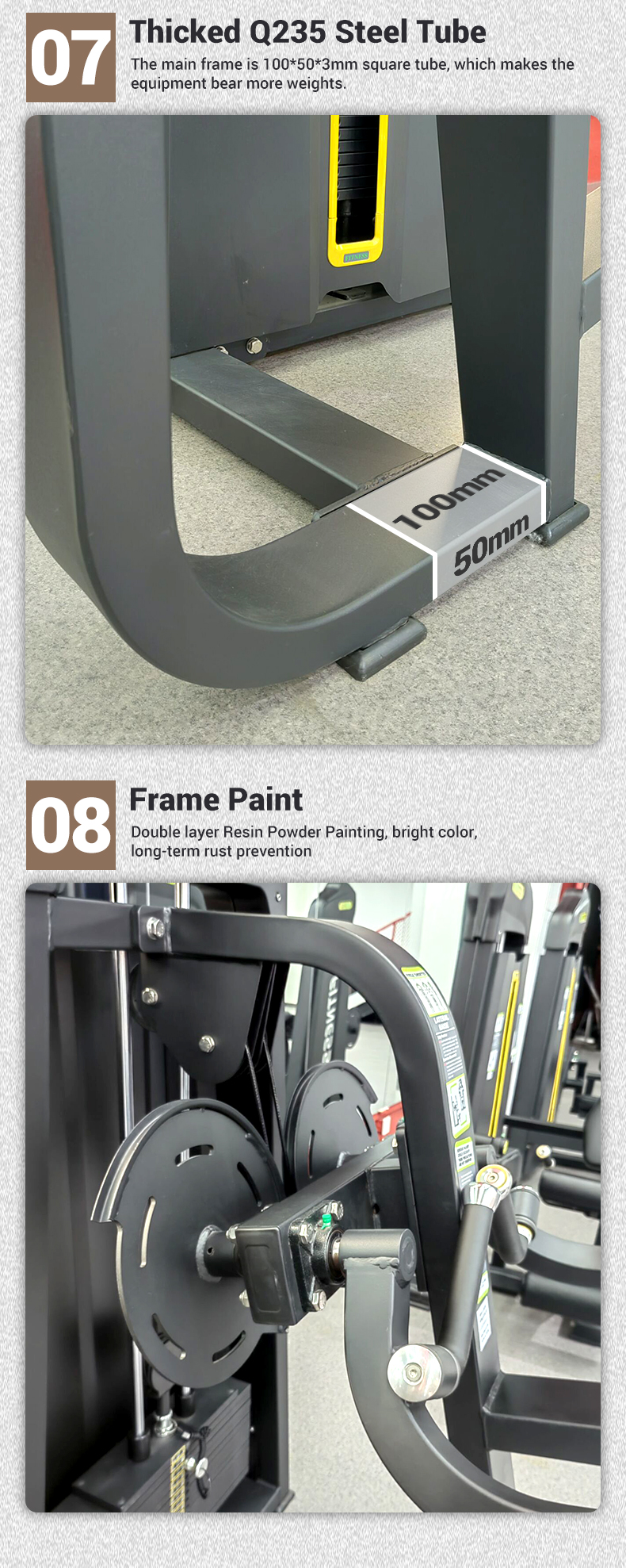 【Estabilidade para serviços pesados】: Com peso líquido de 223kg, a máquina fornece uma base inabalável para treinamentos intensos, eliminando qualquer oscilação ou instabilidade.