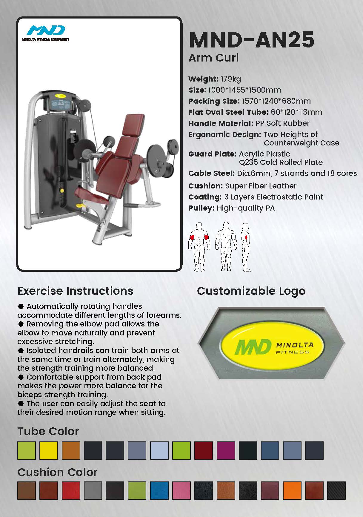 O AN25 apresenta um caminho de curvatura biomecanicamente projetado que mantém tensão constante no bíceps em toda a amplitude de movimento. A almofada de braço ajustável e o sistema de came de precisão trabalham juntos para oferecer o treinamento de braço mais eficaz disponível.