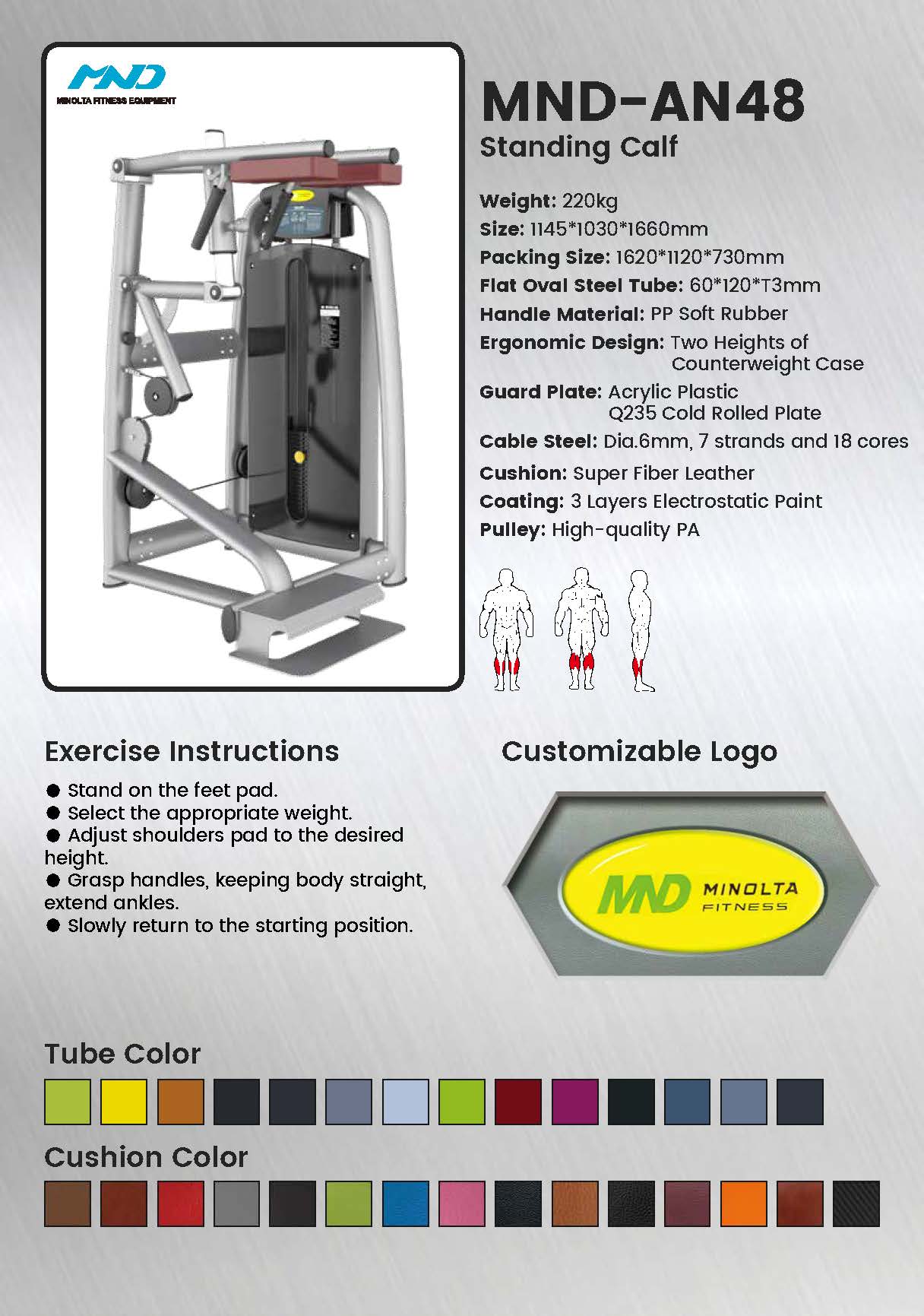 O AN48 apresenta um sistema de carregamento vertical de precisão que mantém a tensão constante nos músculos da panturrilha durante toda a amplitude de movimento. As ombreiras ajustáveis e a plataforma antiderrapante para os pés proporcionam um posicionamento seguro para um treinamento intenso da panturrilha.