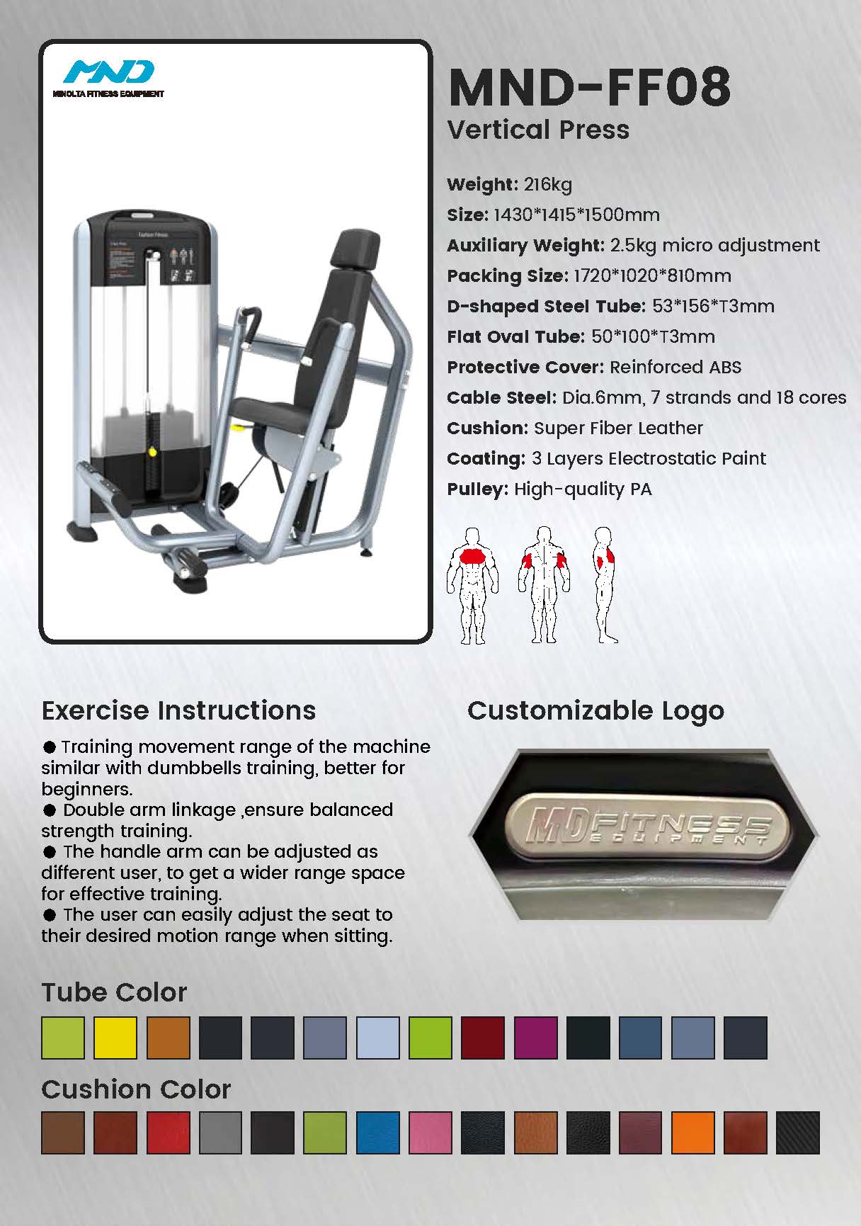 Como sua fábrica OEM e ODM com mais de 15 anos de experiência , equipamos sua academia com máquinas confiáveis e focadas no usuário. O FF08 exemplifica nosso compromisso com durabilidade de nível comercial e design inovador . Beneficie-se de nossas mais de 40 opções de cores e do planejamento GRATUITO do layout da academia para criar o melhor ambiente de treinamento.