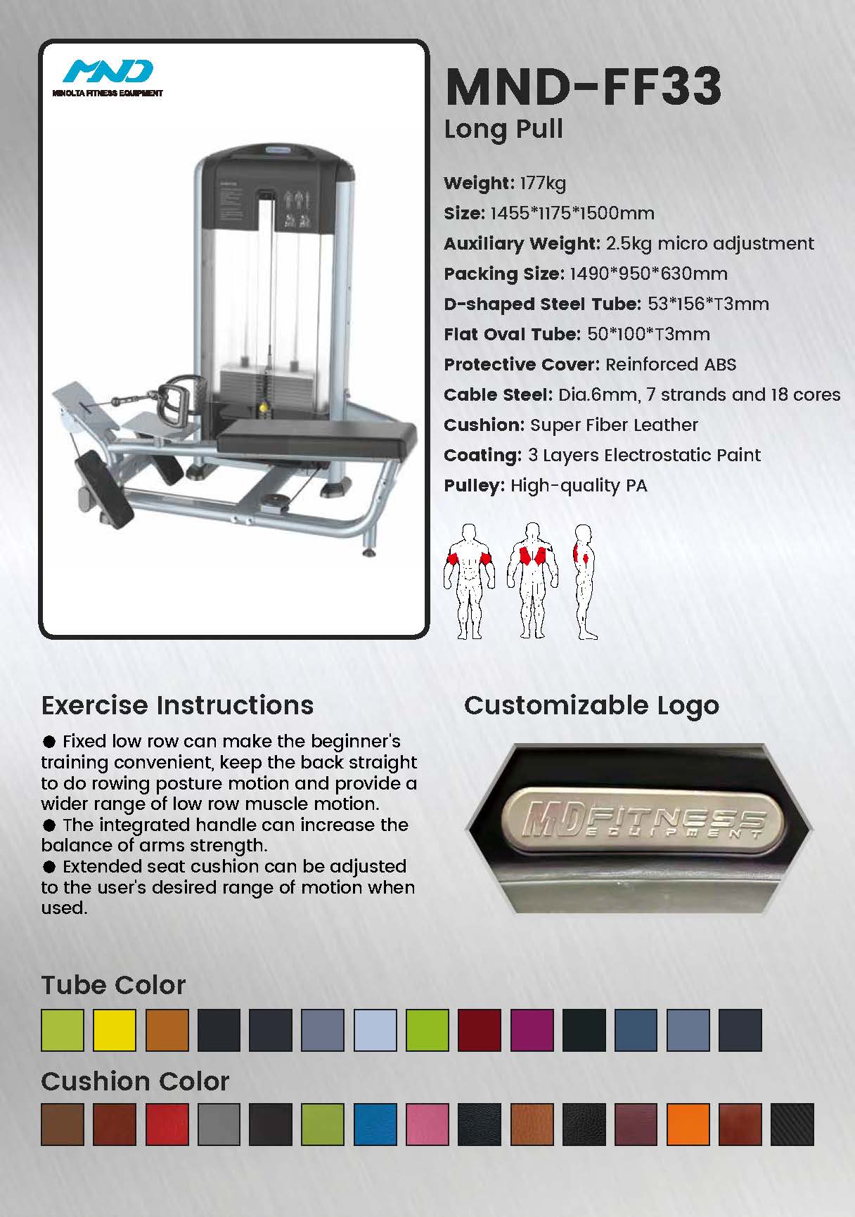 Mire em toda a matriz posterior. O FF33 enfatiza o meio das costas, dorsais e rombóides por meio de um movimento de tração horizontal, essencial para aumentar a espessura das costas, melhorar a postura e equilibrar o desenvolvimento da parte superior do corpo.