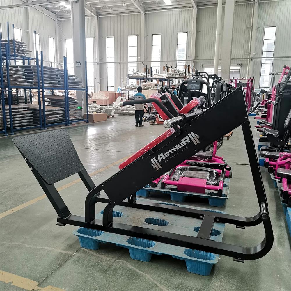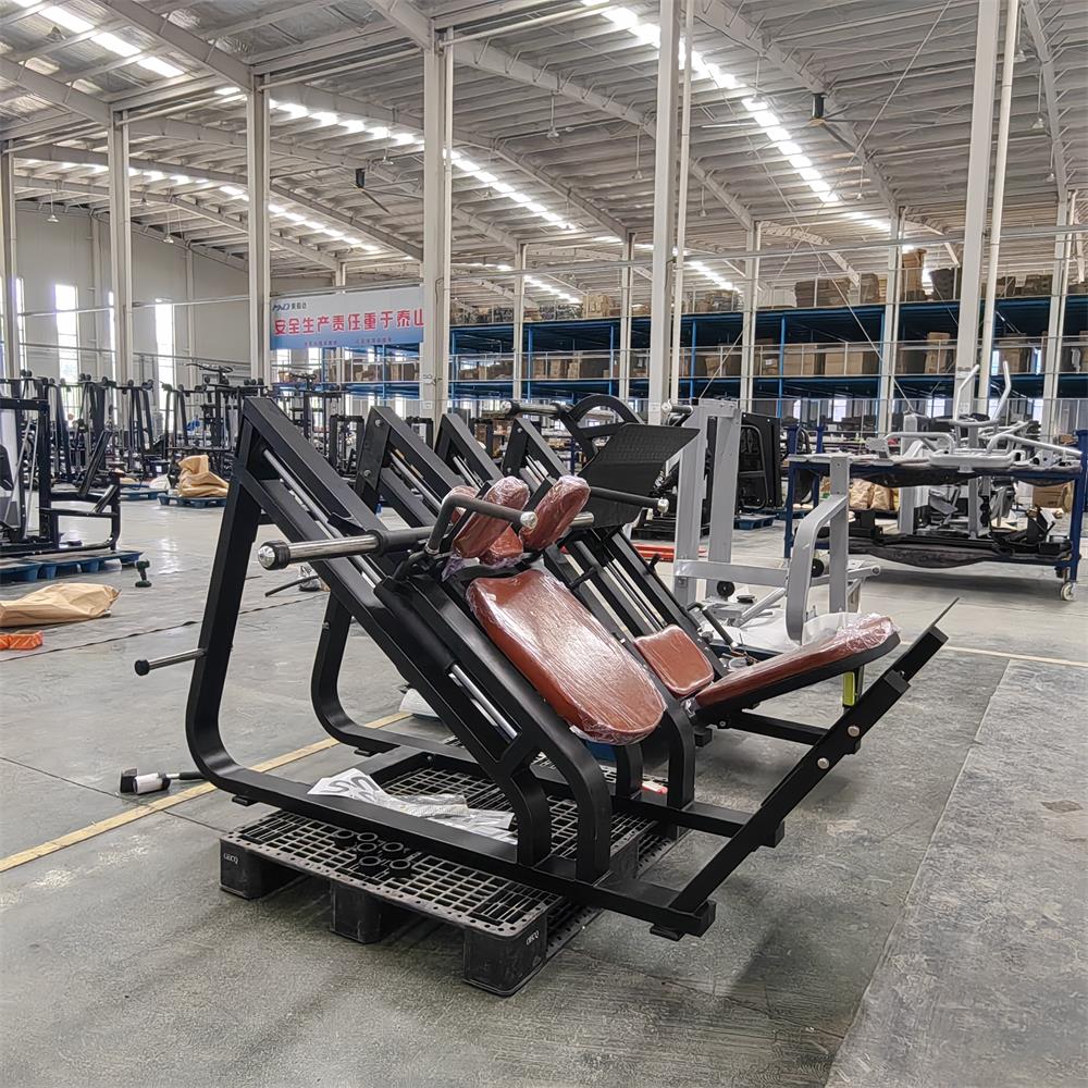 Domine o hack squat com forma suportada. O F57 proporciona um movimento vertical guiado que atinge intensamente o quadríceps enquanto apoia as costas, reduzindo o risco de lesões.