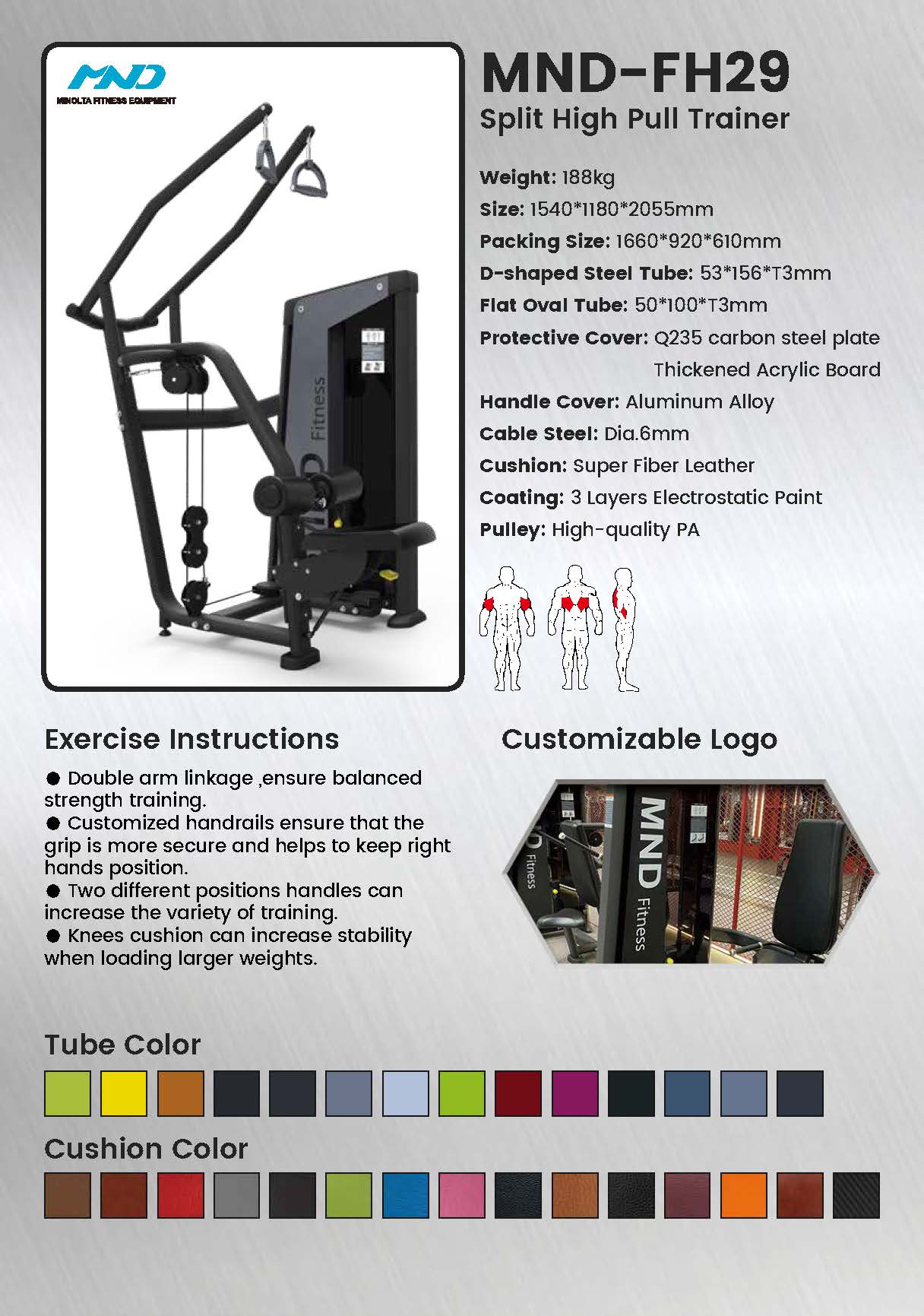 O FH29 Split High Pull Trainer aborda desequilíbrios musculares, permitindo que cada braço trabalhe de forma independente. Esta modalidade de treino avançada é crucial para desenvolver força simétrica nos músculos frequentemente complexos da parte superior das costas e ombros, melhorando tanto a estética como o desempenho funcional.