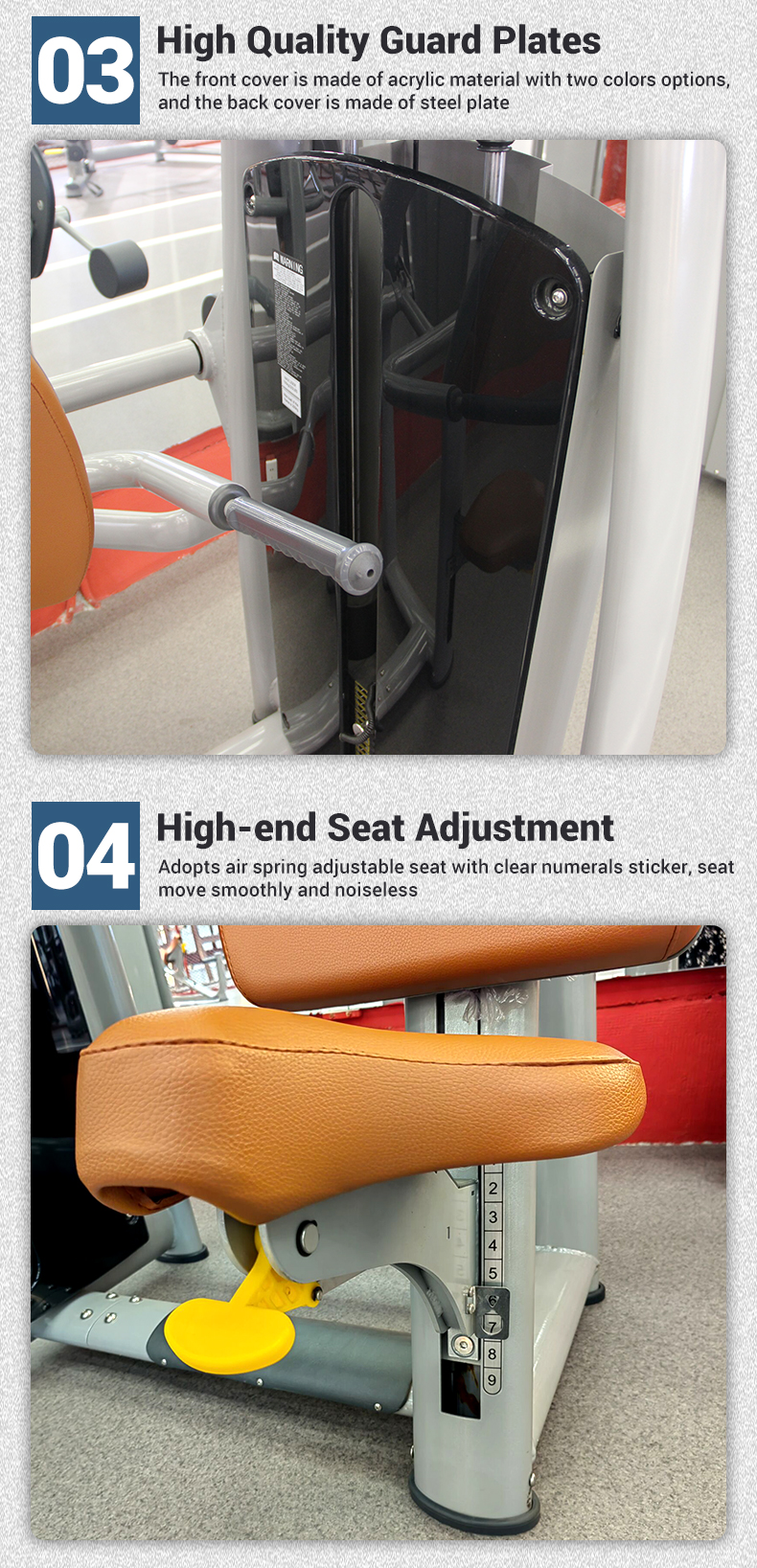O AN47 apresenta um caminho de pressão inclinado de 30 graus biomecanicamente otimizado que atinge especificamente as fibras superiores do tórax. A altura ajustável do assento e o sistema de cames de precisão trabalham juntos para proporcionar um desenvolvimento peitoral superior direcionado.