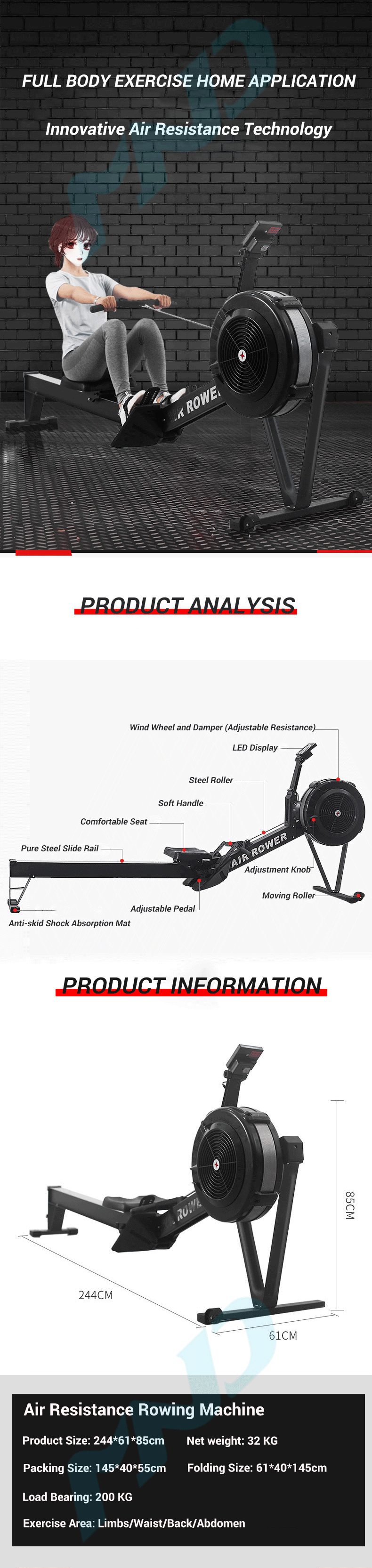 Tamanho da máquina: 235×63×36-108cm