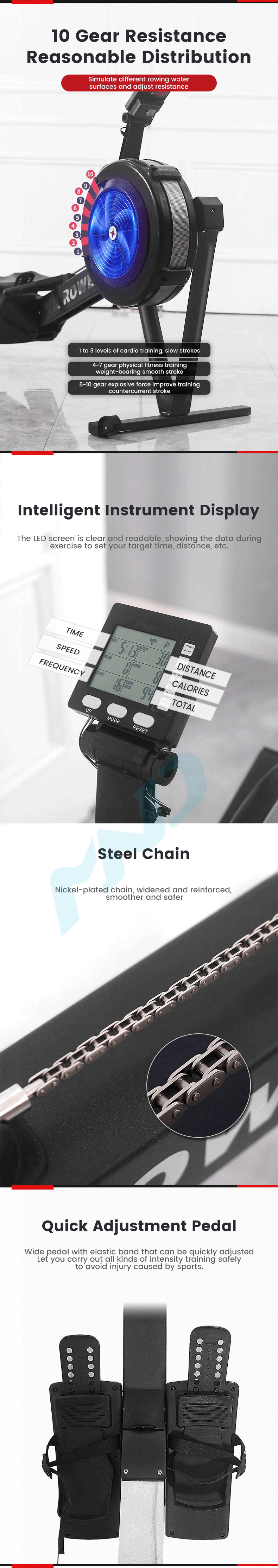 O MND-CC08 aproveita a resistência do vento para criar uma experiência de remo suave e autorregulada. A resistência ajusta-se automaticamente à intensidade do utilizador, enquanto as capacidades de armazenamento compactas maximizam a utilização do espaço nas instalações de fitness.