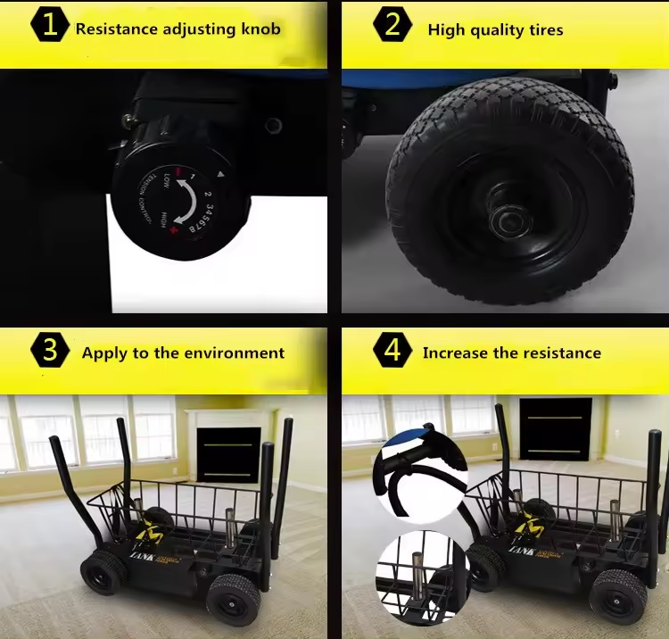 Mobilidade todo-o-terreno: Possui rodas grandes de 30 cm (diâmetro) x 8,5 cm (largura) que rolam suavemente sobre superfícies irregulares, tornando-o ideal para sessões de treinamento ao ar livre.